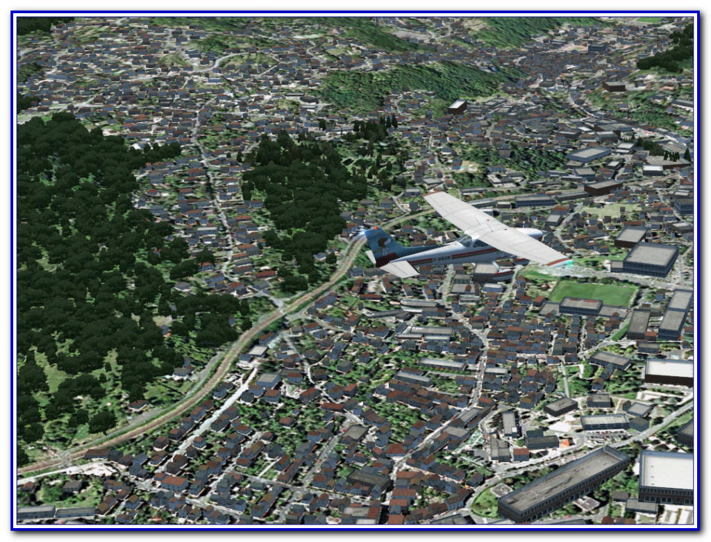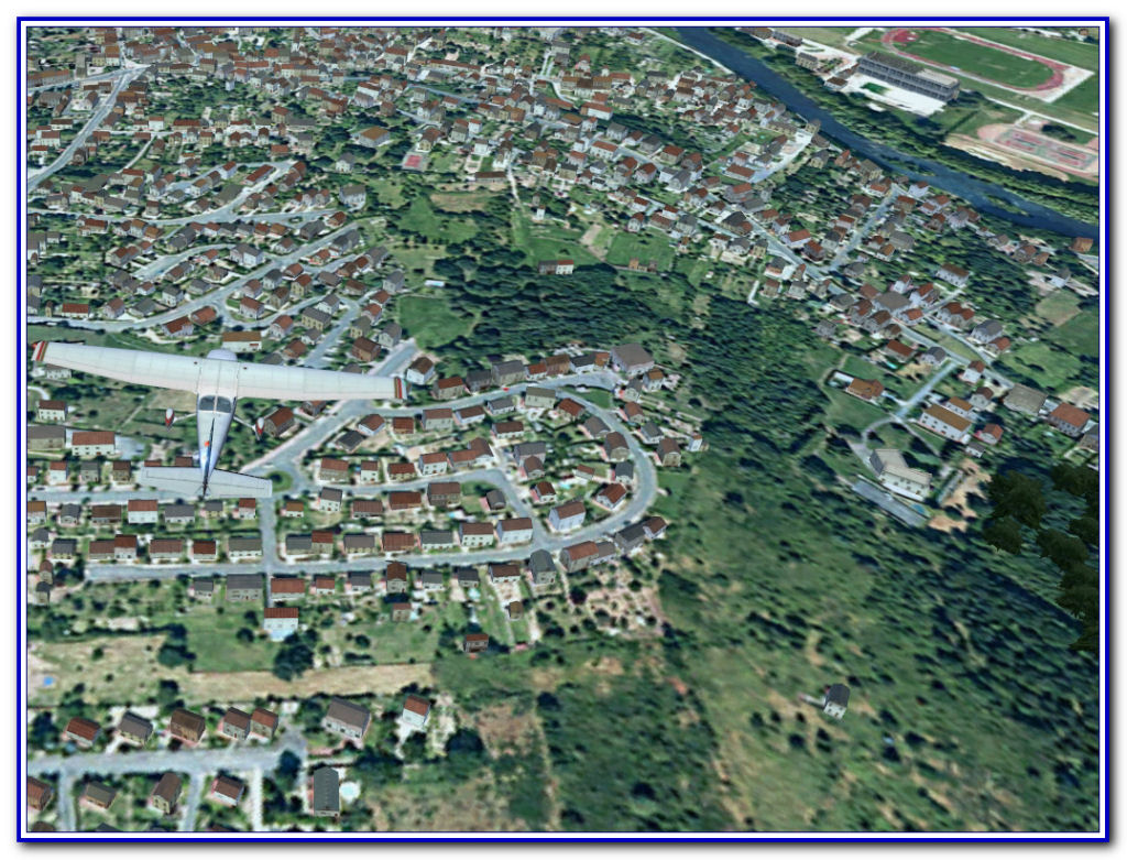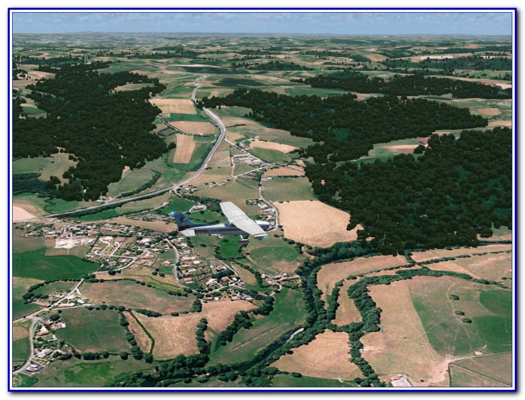Je comprends que ceux qui n'ont pas le budget seront déjà ravis de ce rendu là, et encore plus des travaux de Jacques, et c'est aussi pour eux que je le fais aujourd'hui. Quoi qu'il en soit, les packs VFR en 3D Automation ne seront pas dispos la semaine prochaine, alors pour patienter, je meuble avec cet autogen mixte (végétation + habitations) qui offre un rendu pas si mal que ça ; en tout cas, beaucoup mieux à mes yeux que la scène photo nue. Évidemment, ça engage que moi.