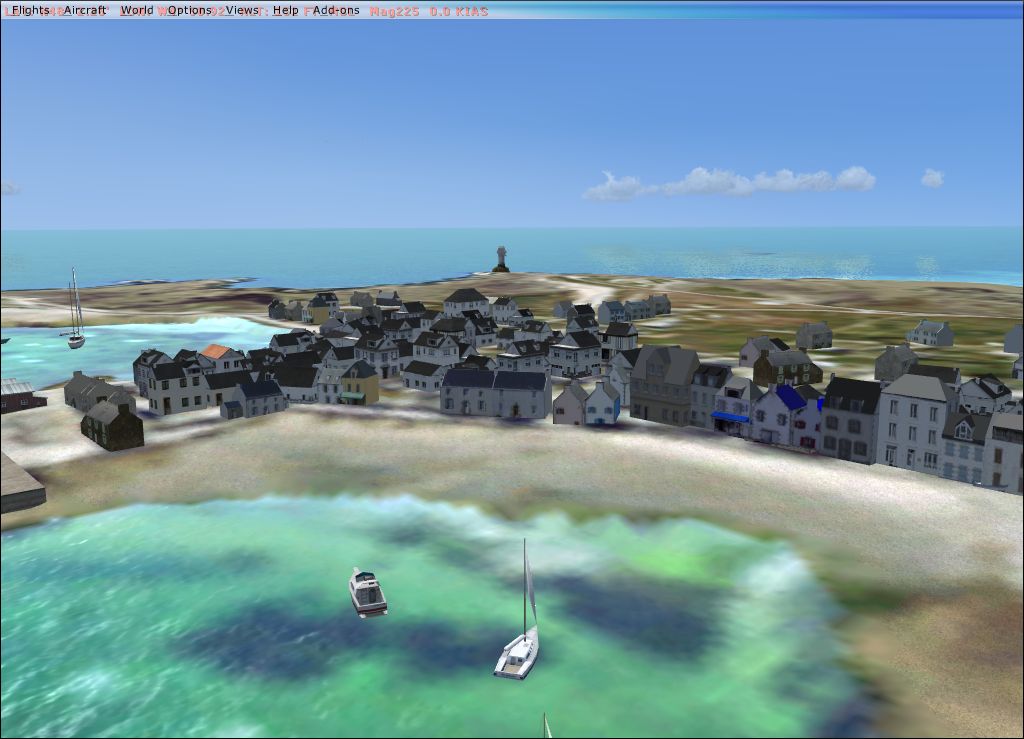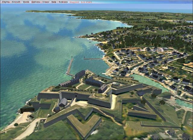 Cette scène a été configurée avec la scène BRETAGNE 3DA 64 bits de FRANCE VFR utilisant un LOD 13 - NextMesh 4.75m,