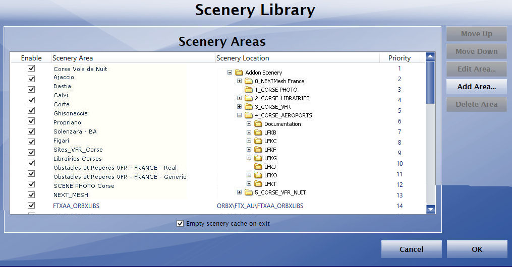 Déclaration des scènes : Ordre du moins ou plus prioritaire dans la bibliothèque des décors de FSX