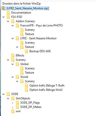 Au terme de l’installation de l’archive, veillez à recopier dans le répertoire Scenery de votre nouvelle scène, le fichier CVX_slp_PDL_LFRZ.bgl fourni par France-VFR et à désactiver (en le renommant avec l’extension .ori par exemple), le fichier AFX.LFRZ.bgl situé dans le répertoire scenery de la scène Pays de Loire PHOTO de France-VFR.