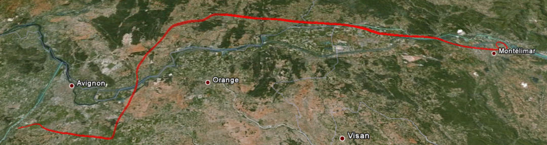 Je ferais la branche aller et Laurent le retour. Ce fut sportif dès le décollage d'Avignon. Limités à 1200 ft car les zones d'Orange étaient actives, avec pas mal d'appareils militaires dans notre secteur. Initialement, j'avais escompté transité par Carpentras (NE/LFMV) puis tirer plein nord, mais nous avons été contraint d'emprunter le transit Ouest par Roquemore (NW/LFMV), Bagnols sur Sèze, Pont-Saint Esprit, puis travers Pierrelatte pour tirer sur Montélimar.